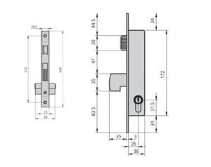 CERRADURA EMBUTIR C.V.L. 1990V/25/5 GANCHO Y VAIVÉN