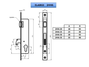 CERRADURA EMBUTIR METAL ILARGI 2446-IN 20 MM RODILLO GANCHO