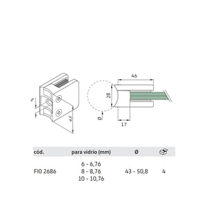 Prensa cristal 44x45x28 para fijación a tubo plano