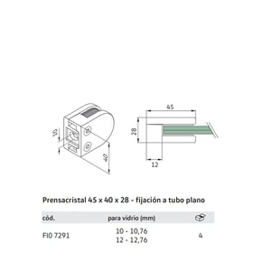 Prensacristal 45 x 40 x 28 - fijación a tubo plano
