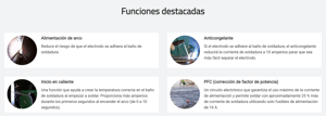 Si el electrodo se adhiere al baño de soldadura, el anticongelante reducirá la corriente de soldadura a 10 amperios parar que sea más fácil separar