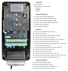 Con inversor incorporado y pantalla táctil interactiva, permite un control preciso y la supervisión continua de todos los dispositivos de seguridad — como fotocélulas, bordes sensibles y
