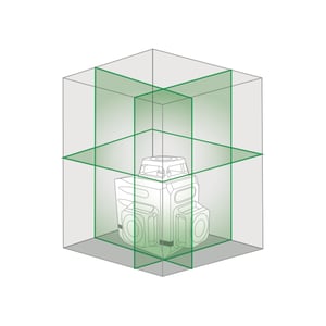 Proyecta 3 planos láser a 360°: uno horizontal y dos verticales