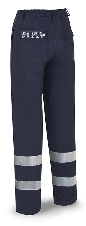Pantalón ignífugo y antiestático con cintas refelctantes con protección contra calor y llama, soldeo y procesos afines y los efectos térmicos del arco eléctrico.