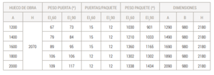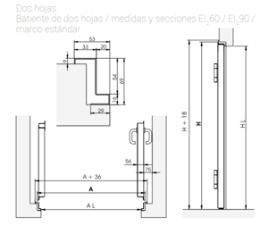 Las batientes cortafuego ROPER de dos hojas se fabrican para varias medidas de hueco. En ancho desde 1000 hasta 2500 mm, en alto de hueco