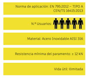 - EN 795:2012 TIPO A - CEN/TS 16415:2013