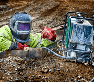 condiciones duras. La máquina de soldadura no para de soldar.