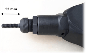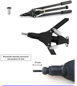 - Remachadora manual de dos brazos para tuercas remachables ranuradas.