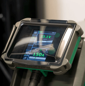Usando la pantalla gráfica, el soldador puede ajustar los parámetros a la perfección, hasta un amperio, sin tener que estar justo al lado de la